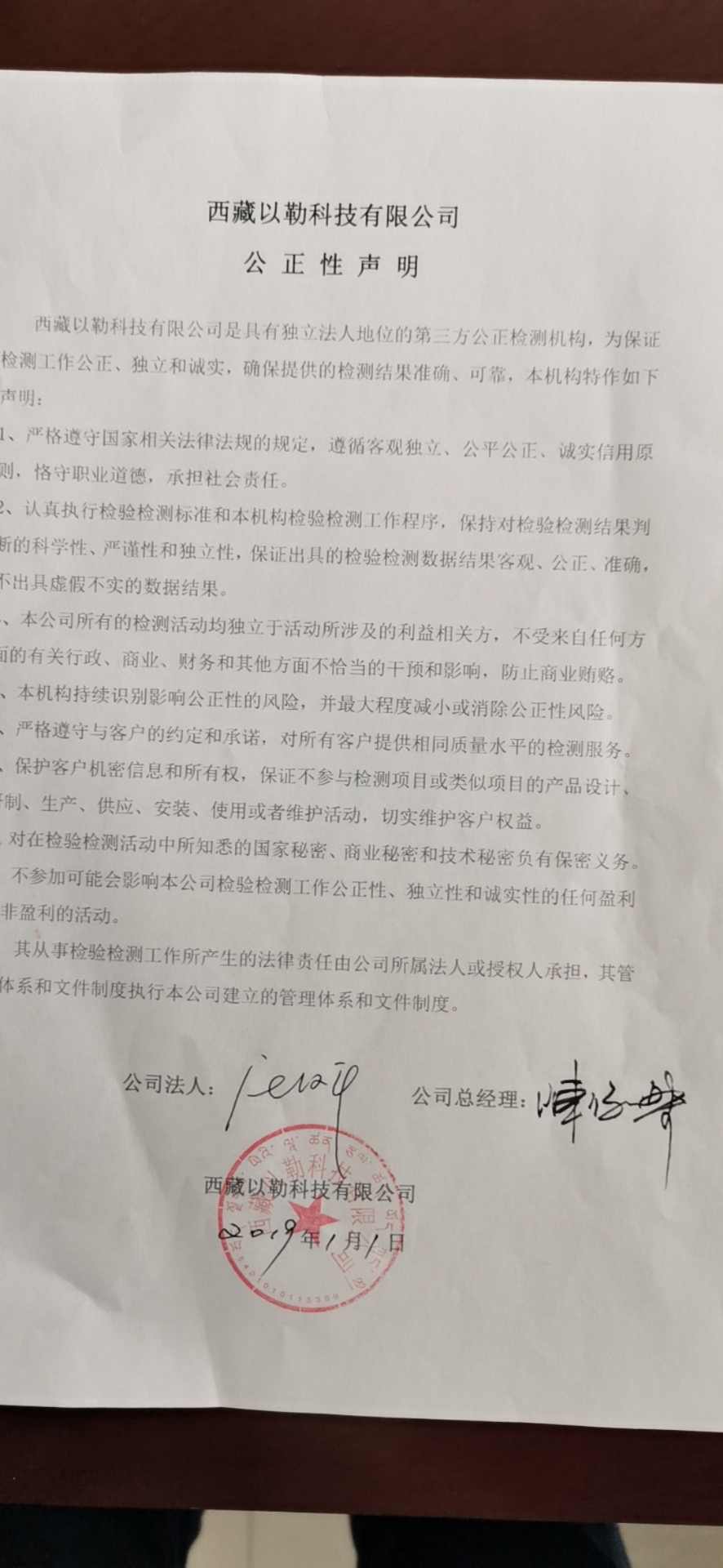 西藏以勒科技有限公司是依法成立的第三方檢驗檢測機構,承擔環(huán)境保護監(jiān)測技術服務、污染源在線監(jiān)控設施委托運行;環(huán)境本底值測試;環(huán)境驗收監(jiān)測、生態(tài)調查、環(huán)境科研,監(jiān)測方法研究;中央空調通風系統(tǒng)檢測與技術服務;食品檢驗服務,藥品檢驗服務;室內環(huán)境污染檢測與治理,汽車尾氣檢測服務;制氧設備和供氧系統(tǒng)的檢測服務;廢舊油氣回收等多種業(yè)務檢測評價工作,所有業(yè)務過程均嚴格按照公司制定的各項制度,采取層層監(jiān)督等措施,做到公開透明,保證絕不會因利益沖突或其他原因出具有失公允的檢測、評價報告,為確保檢驗檢測、評價工作的公正性、獨立性,聲明如下: